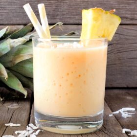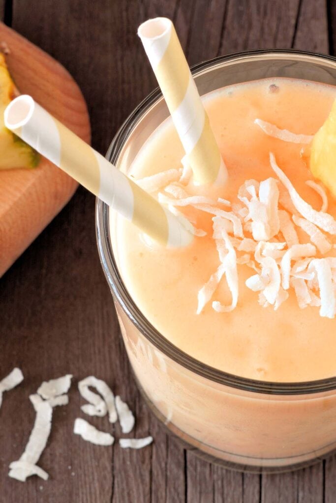 A smoothie generally requires some form of milk or yogurt, otherwise you would likely just be drinking juice. This recipe uses coconut milk to compliment the tropical flavors.